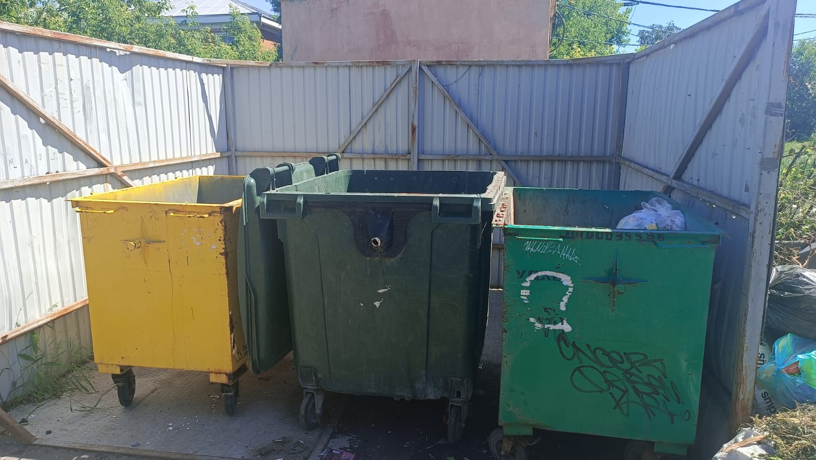 Мусорная куча расположилась в непосредственной близости к специальным контейнерам, содержимое которых опустошается регулярно, и остаётся "незамеченной" при вывозе мусора, при том, что жители ежемесячно оплачивают эту услугу.